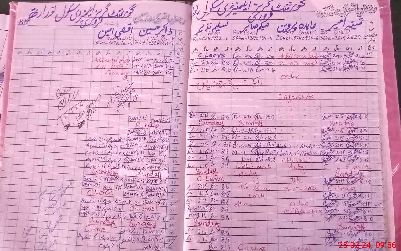 | Leave | Duty | Absent | Maternity | Medical | Ex- Pak |