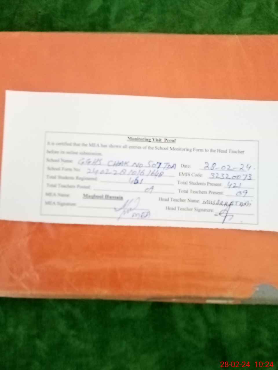 | EMIS Code: 32320073 | Name of School: GGHS CHAK NO. 507 TDA | |||
