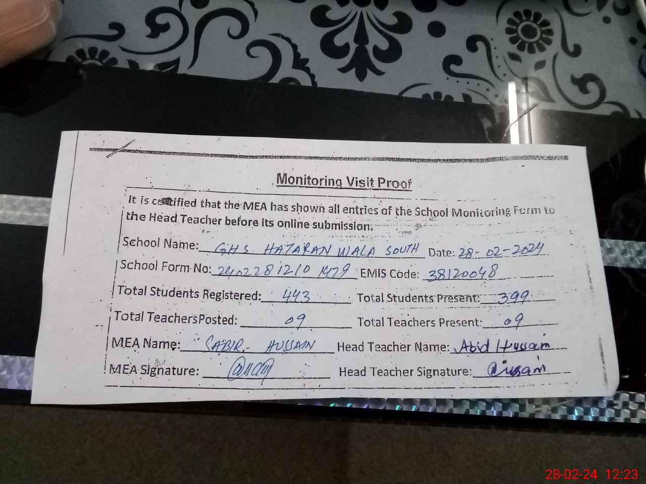 | EMIS Code: 38120048 | Name of School: GHS HATARAN WALA SOUTH | |||