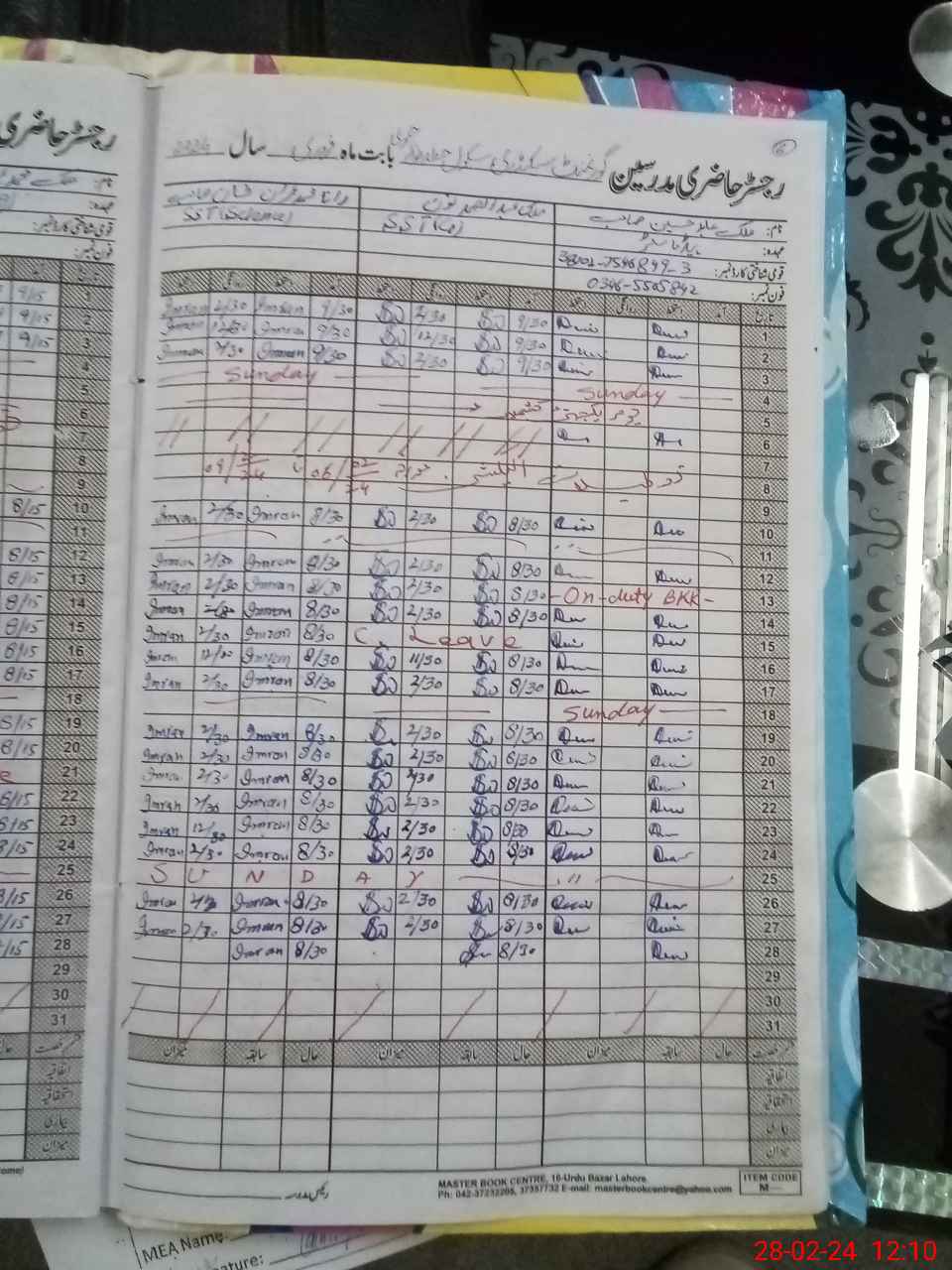 | CNIC | Full Name | Designation | R/C | Absence During Last Calender Month |