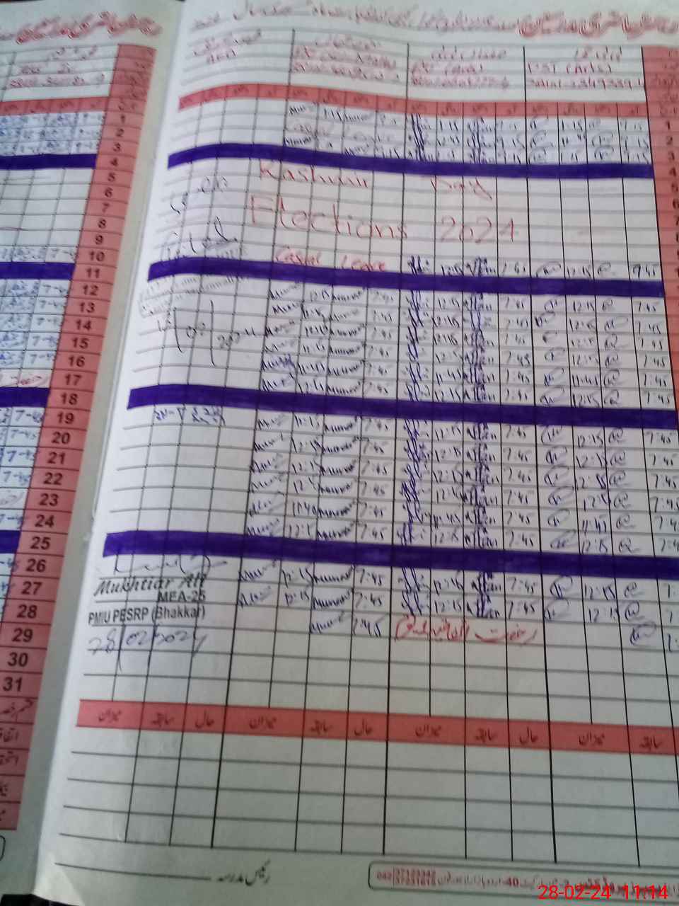 | CNIC | Full Name | Designation | R/C | Absence During Last Calender Month |