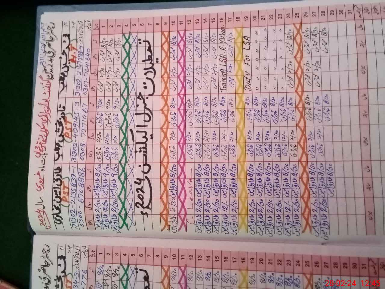 | Leave | Duty | Absent | Maternity | Medical | Ex- Pak |