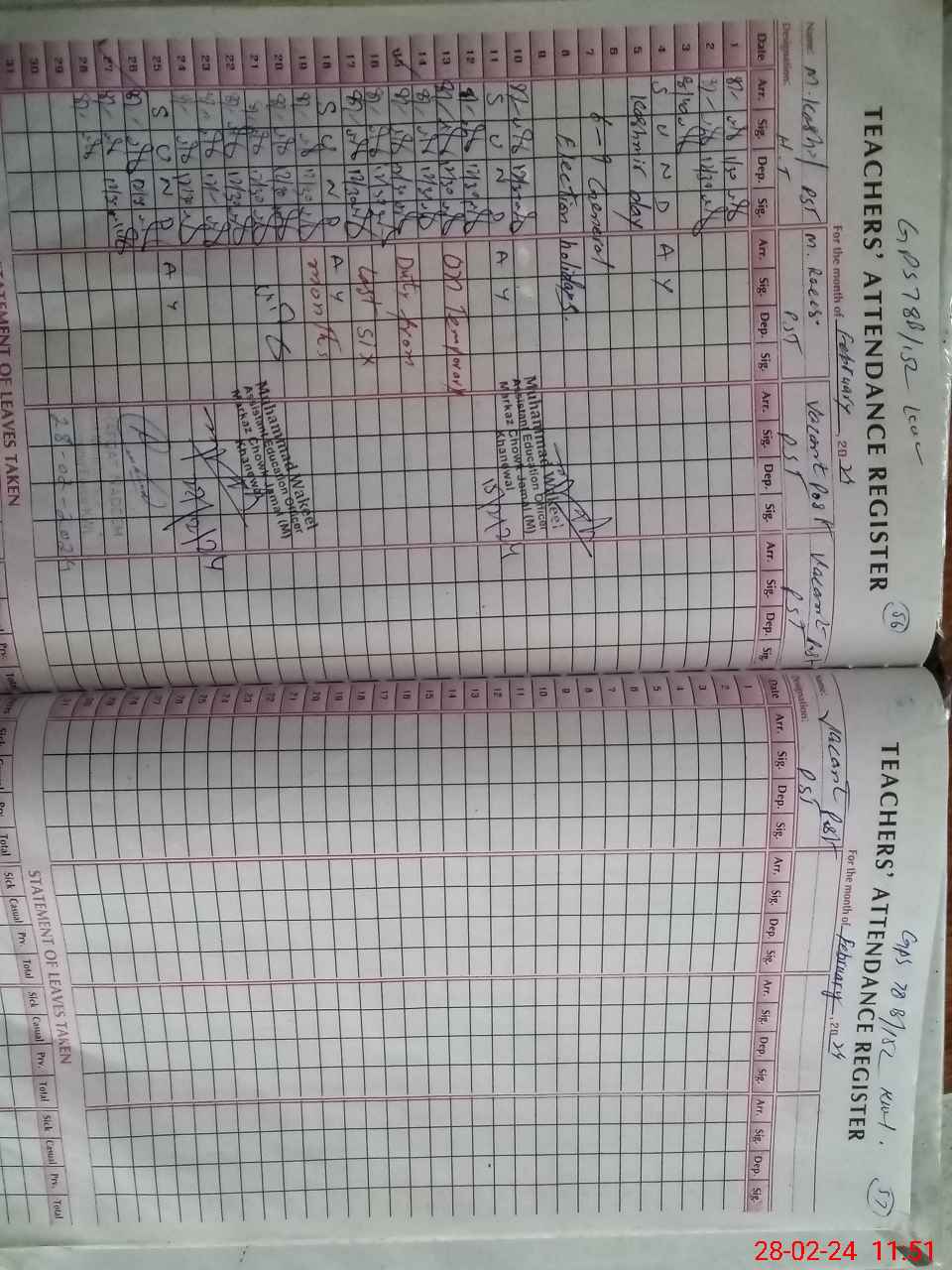 | Name: MKA**** Designation: (School Headmaster's/Headmistress's) PST Phone/Cell Number: 03**** |