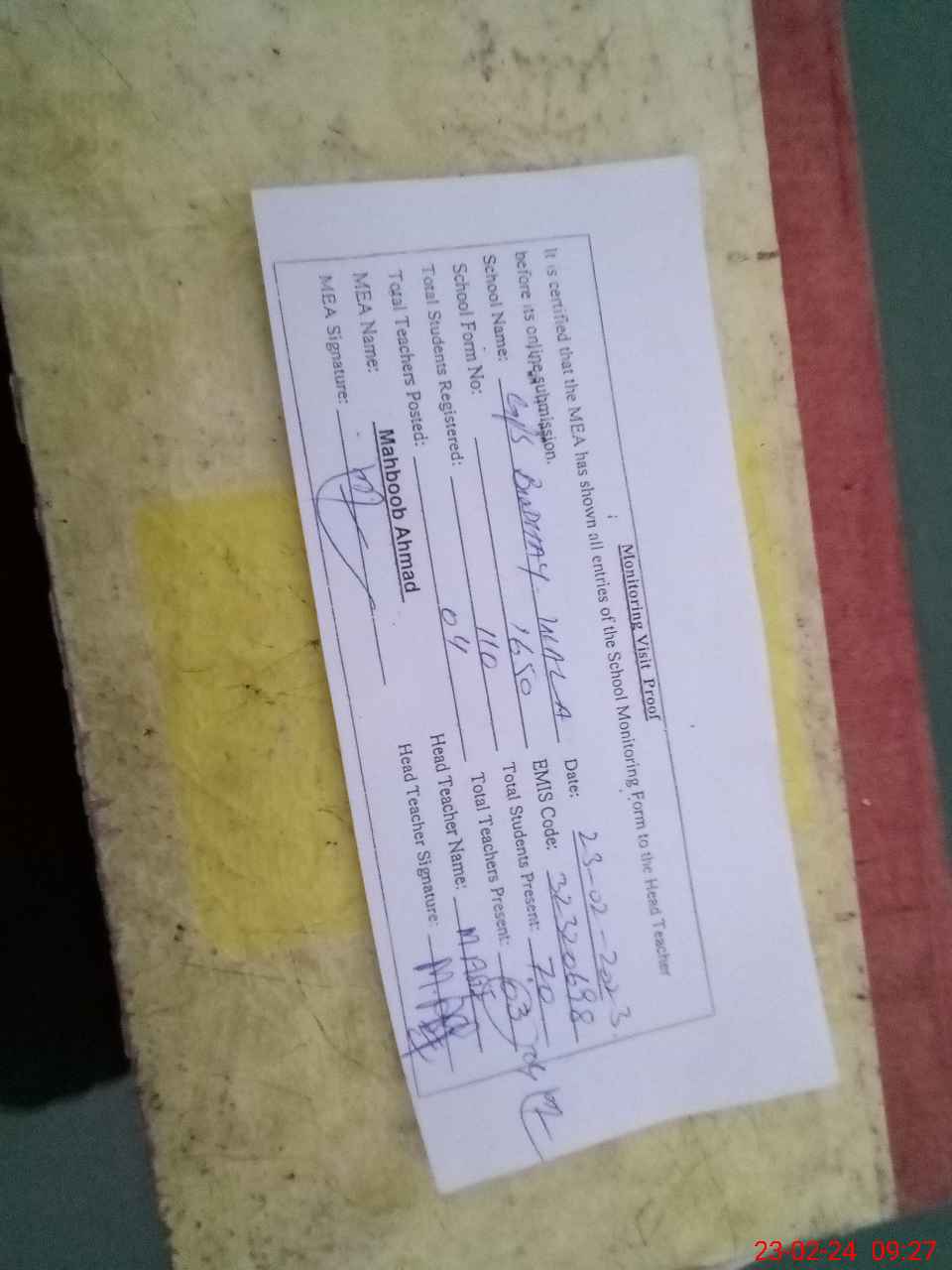 | EMIS Code: 32320698 | Name of School: GPS BUDHAY WALA | |||