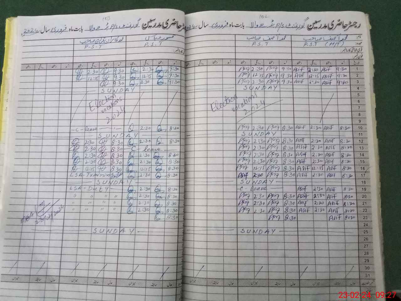 | 32**** | Mu**** Ka**** Qu**** | 1 | 1 | 0 | 0 | 0 | 0 | 0 | 0 | 0 | 0 | 0 | Exam Duty |