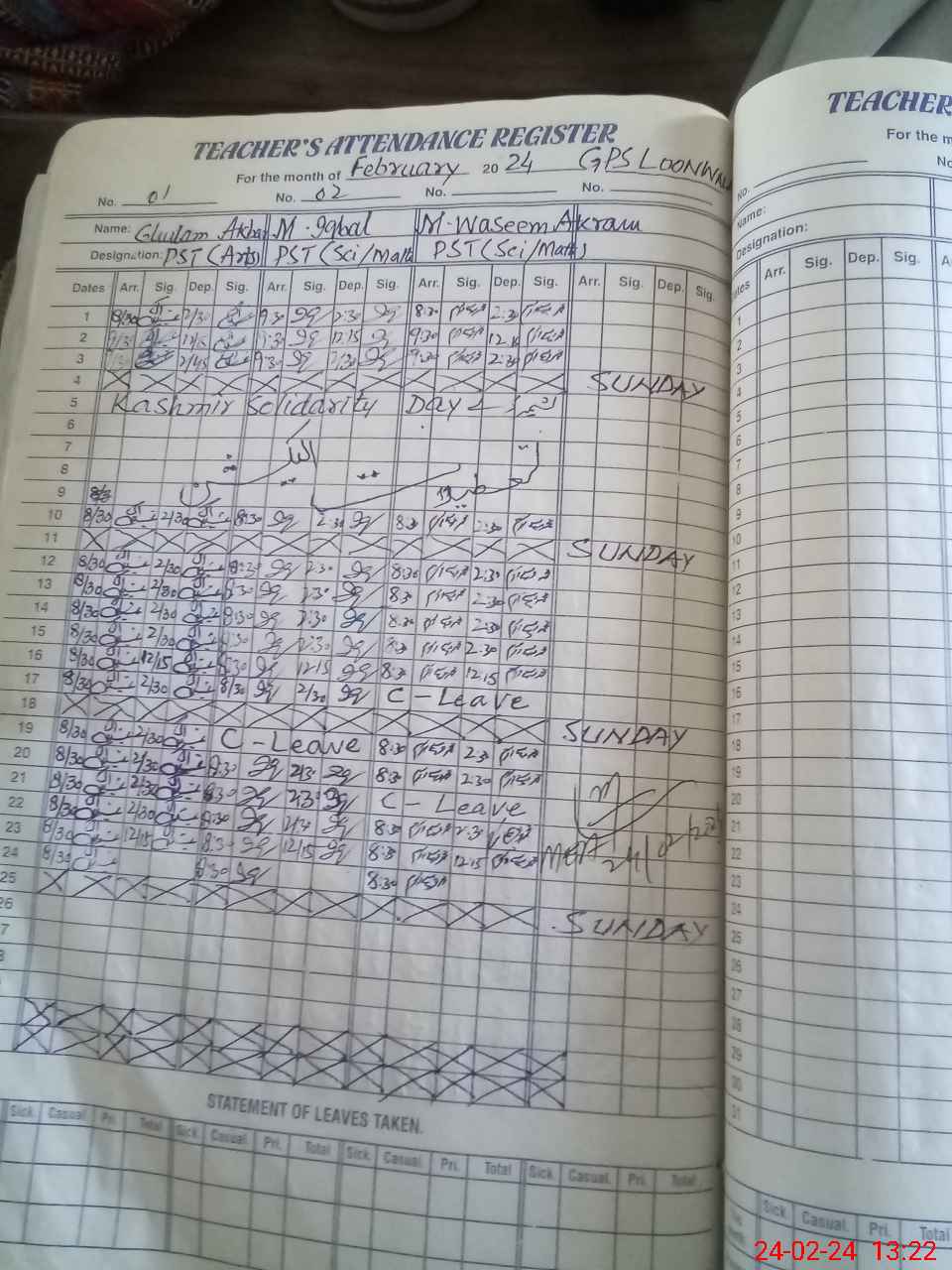 | Leave | Duty | Absent | Maternity | Medical | Ex- Pak |