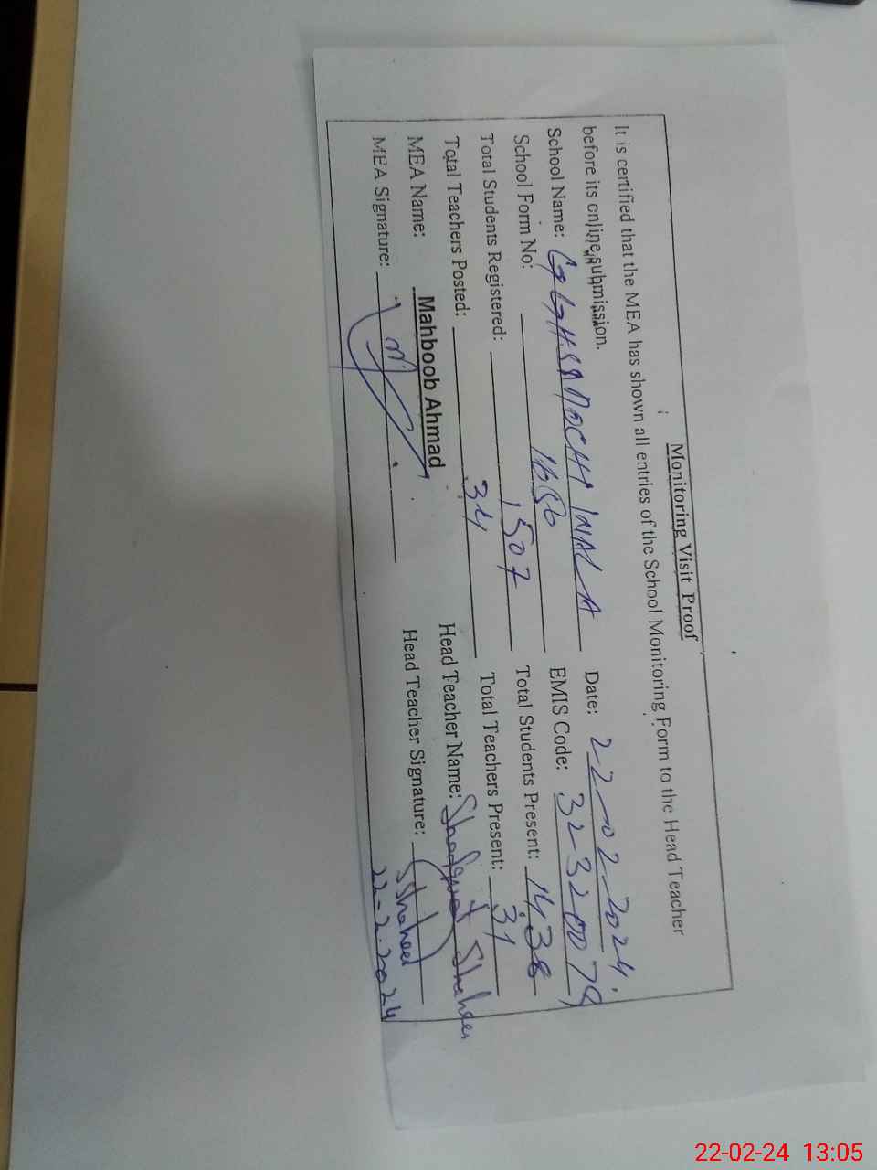 | EMIS Code: 32320079 | Name of School: GGHS MOCHI WALA | |||
