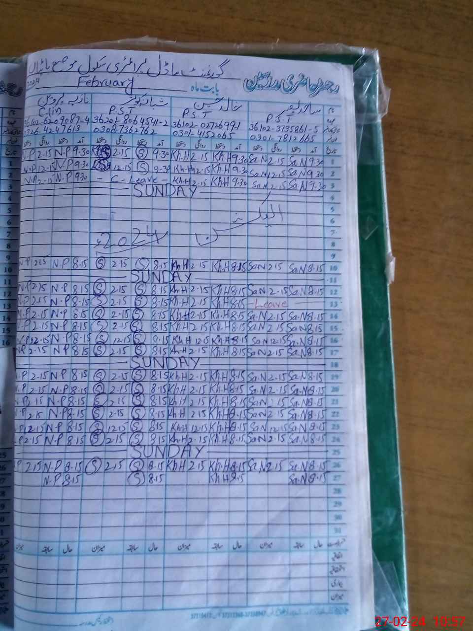 | Name: Sa**** Na**** Designation: (School Headmaster's/Headmistress's) PST Phone/Cell Number: 03**** |