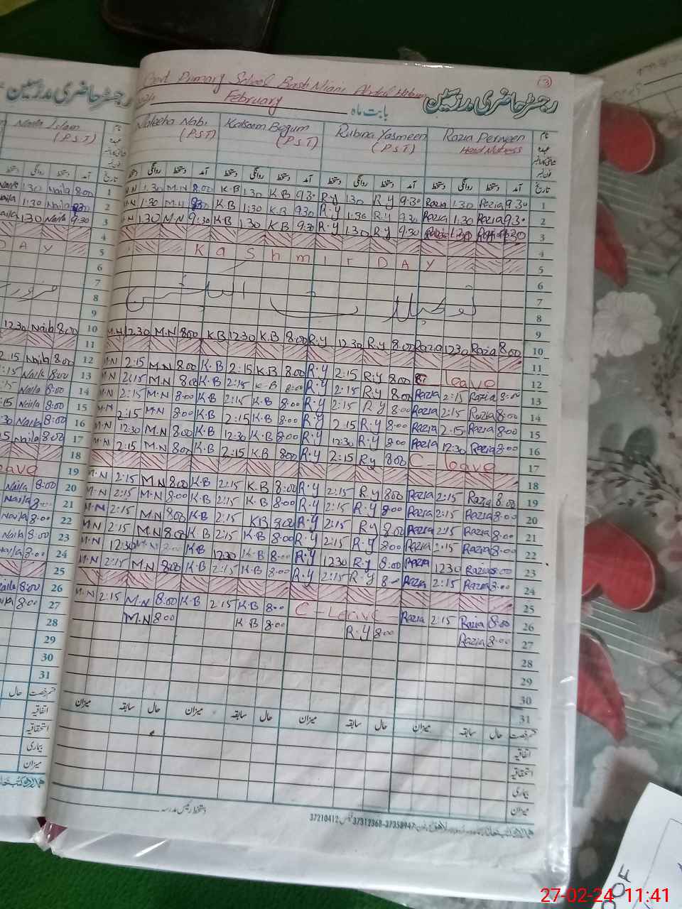 | CNIC | Full Name | Designation | R/C | Absence During Last Calender Month |