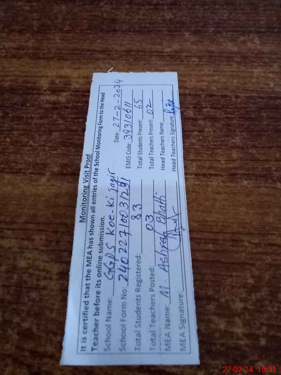 | EMIS Code: 39310611 | Name of School: GGPS KUAYKI JAGEER | |||