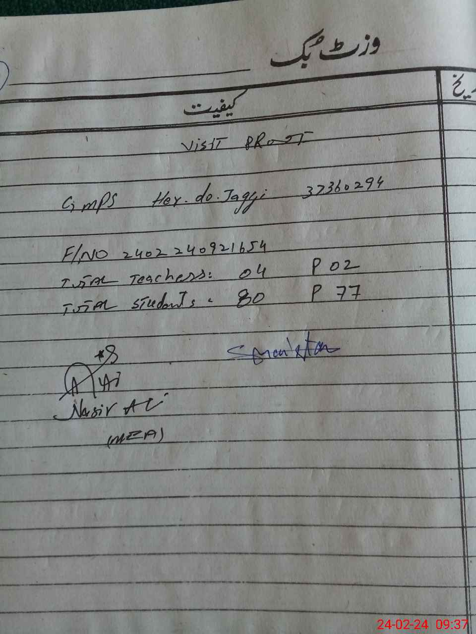 | Attendance Register | Head Teacher | MEA with School | Visit Proof |