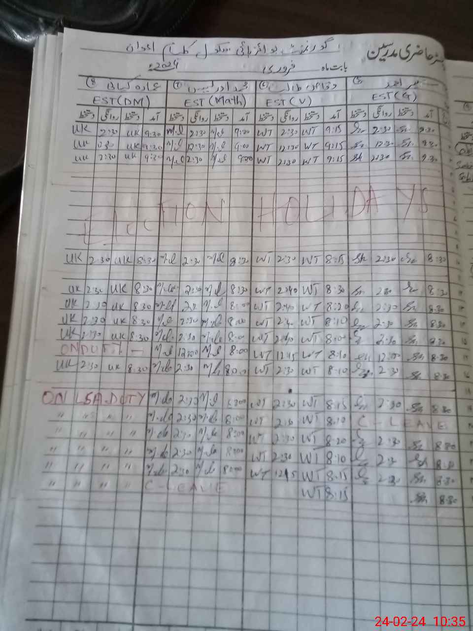 | 37**** | Um**** Ka**** | EST | Regular | 0 | 0 | 0 | 0 | 0 | 0 | 0 | 0 | 0 | Exam Duty |