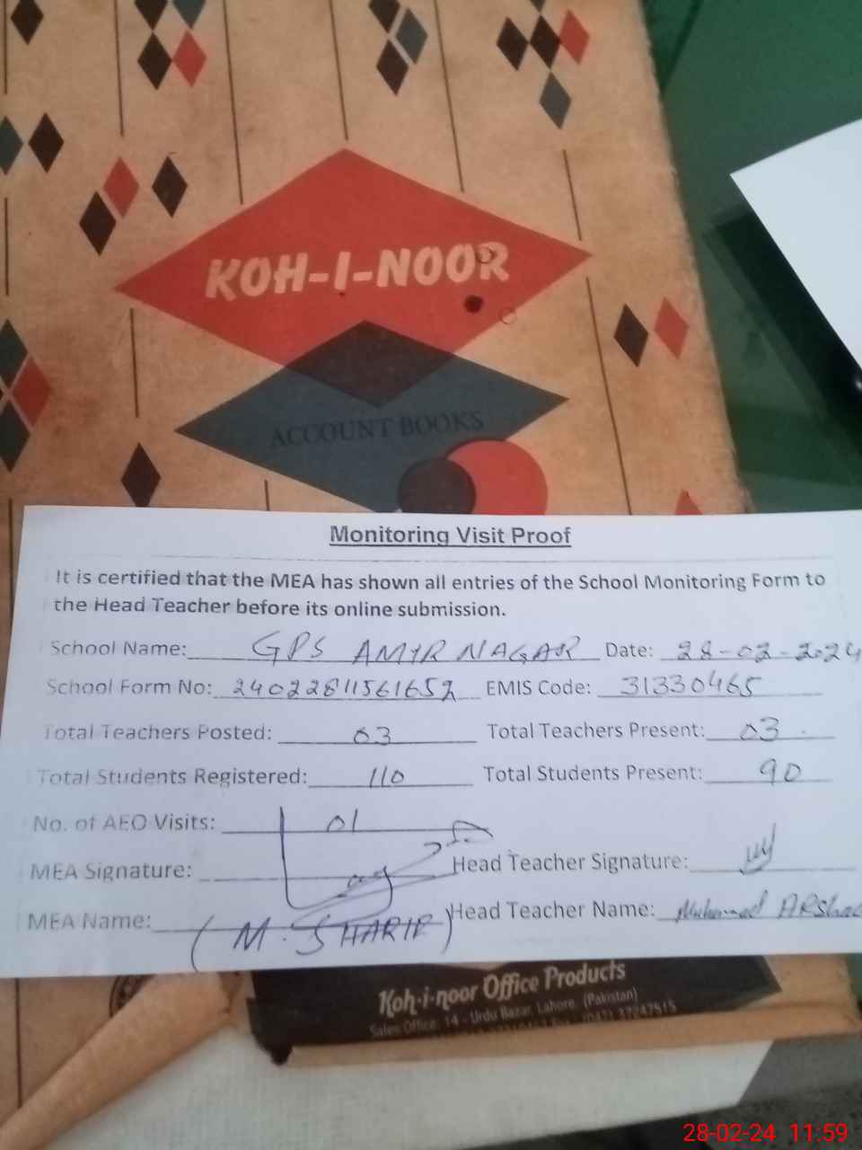 | EMIS Code: 31330465 | Name of School: GPS AMIR NAGAR | |||