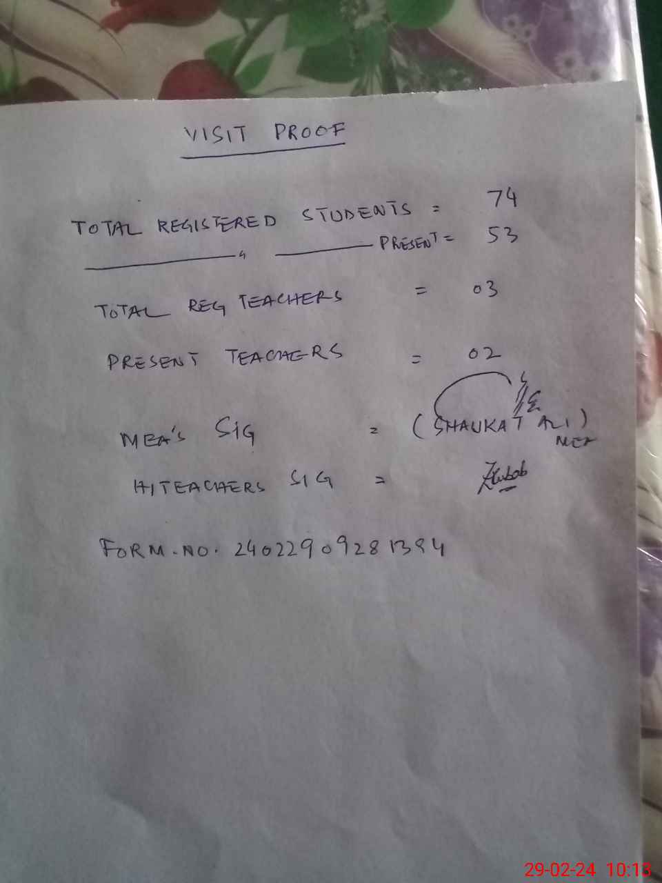 | Certified that this School was Inspected by the Undersigned MEA/DMO Today and the Information Stated Above is as Per Record. | |||||