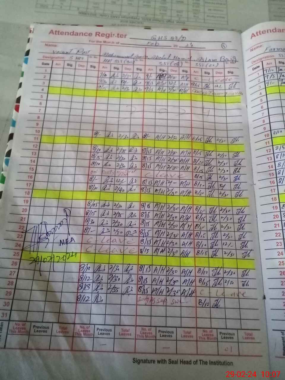 | 36**** | Ab**** Ha**** | 1 | 0 | 2 | 0 | 0 | 0 | 0 | 0 | 0 | 0 | Exam Duty | |