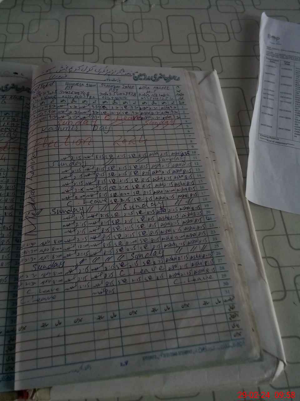 | CNIC | Full Name | Designation | R/C | Absence During Last Calender Month |