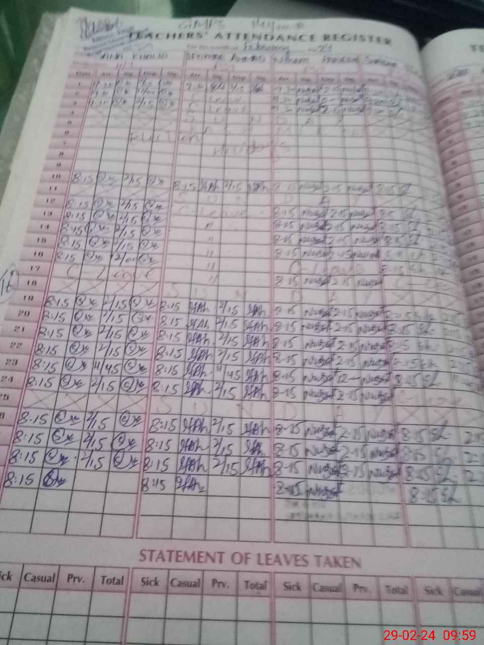 | Leave | Duty | Absent | Maternity | Medical | Ex- Pak |