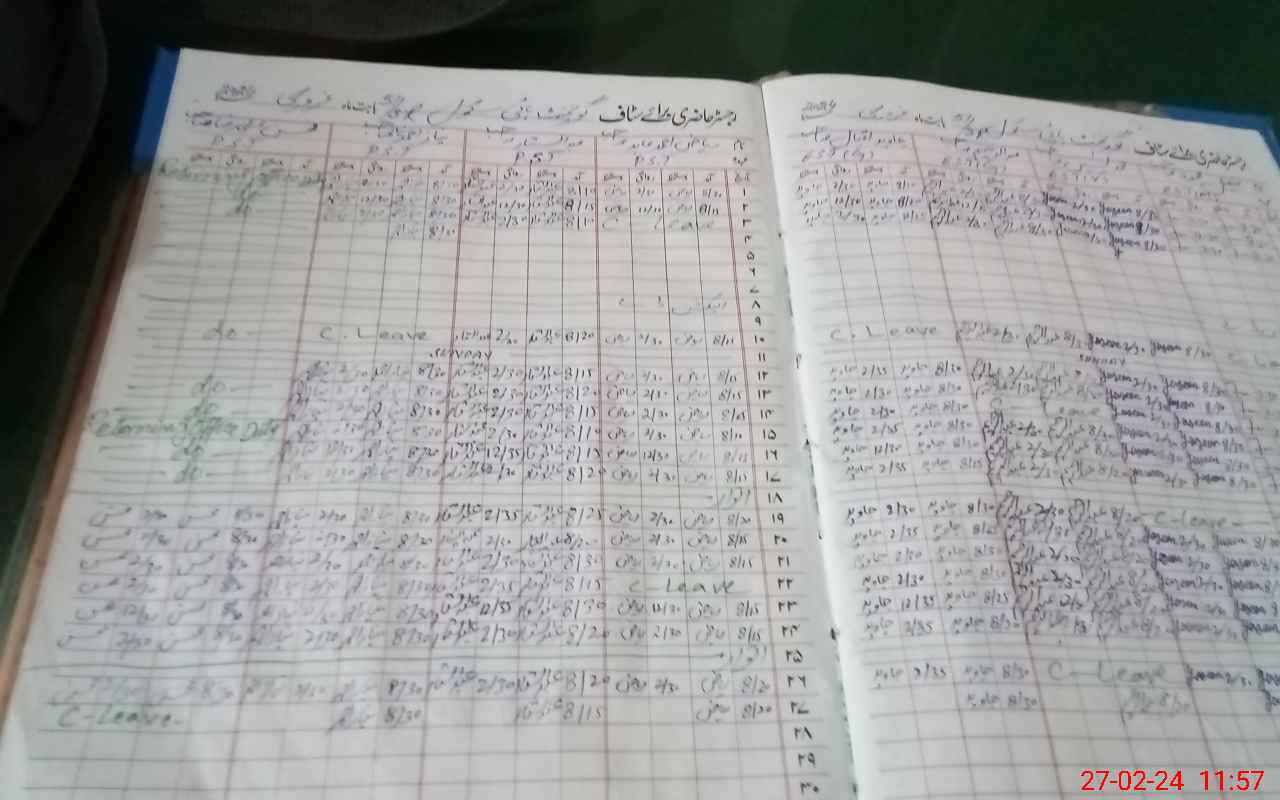 | CNIC | Full Name | Designation | R/C | Absence During Last Calender Month |