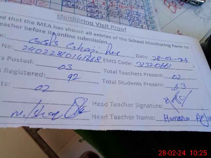 | EMIS Code: 31320661 | Name of School: GGPS GHAZI PUR | |||