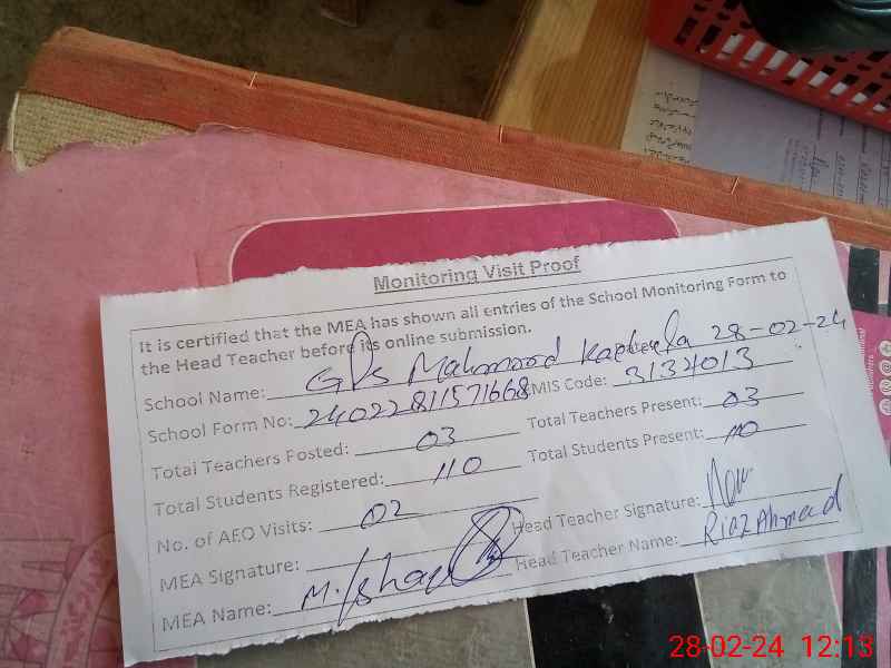 | EMIS Code: 31321013 | Name of School: GPS MEHMOOD KHAN KACHHALA | |||