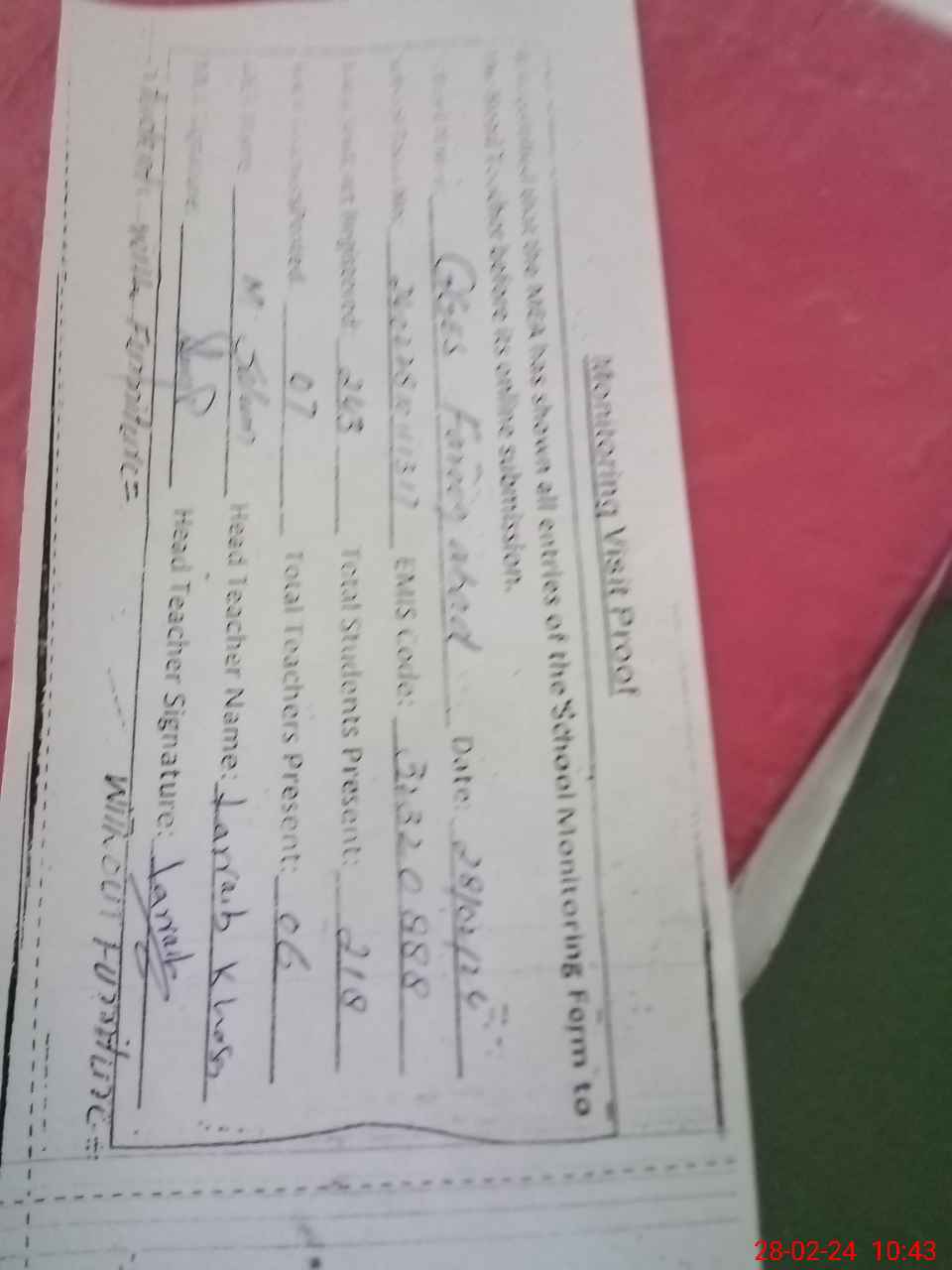 | EMIS Code: 32320888 | Name of School: GGES FAROOQ ABAD | |||