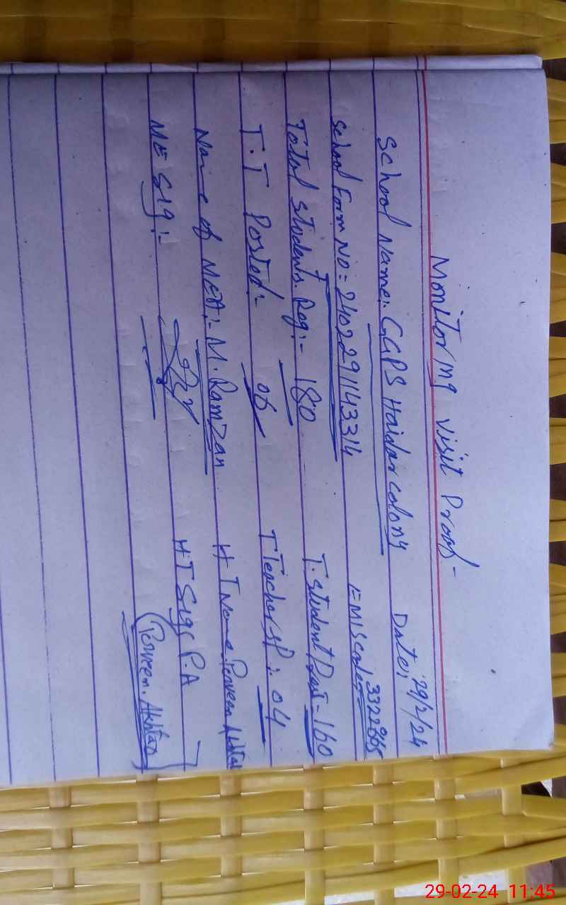 | EMIS Code: 33220665 | Name of School: GGPS HAIDAR COLONY | |||