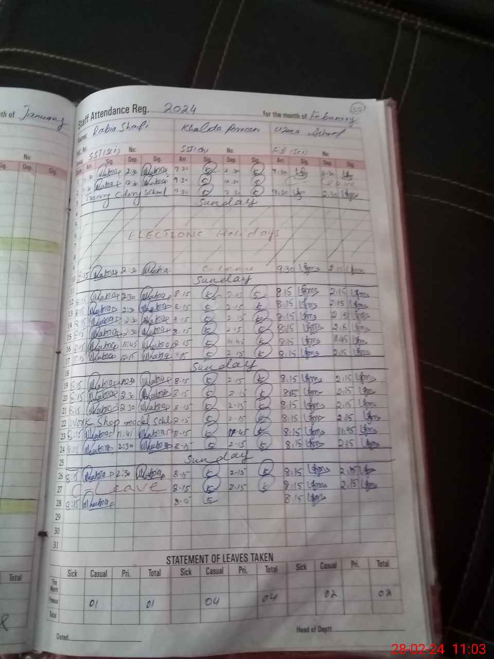 | Leave | Duty | Absent | Maternity | Medical | Ex- Pak |