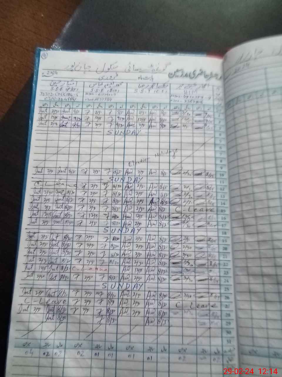 | CNIC | Full Name | Designation | R/C | Absence During Last Calender Month |