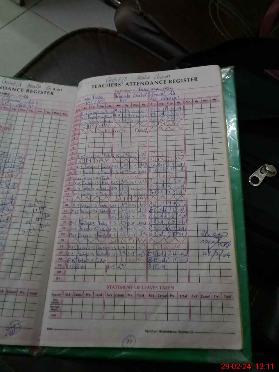 | Leave | Duty | Absent | Maternity | Medical | Ex- Pak |