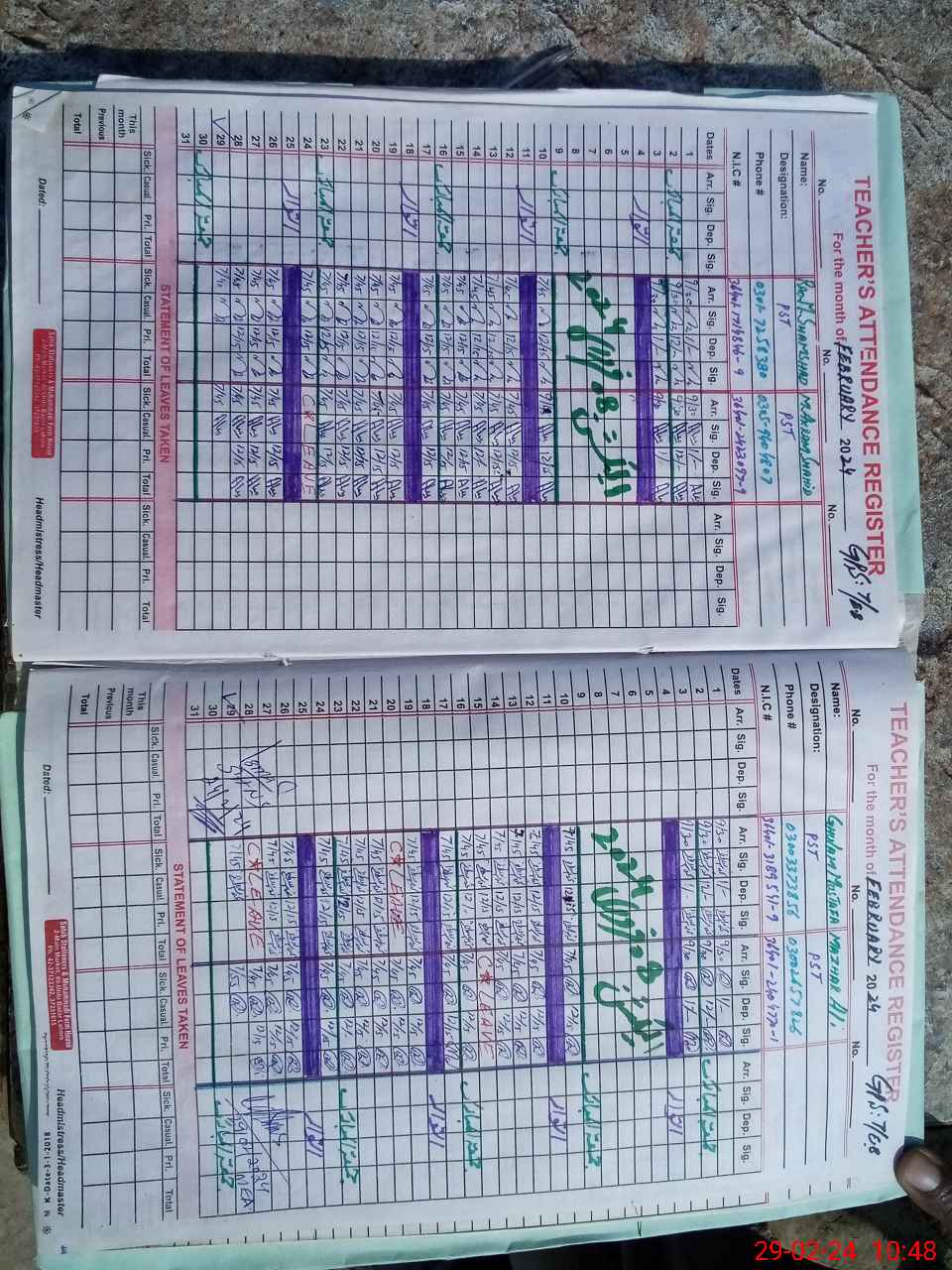 | Name: MU**** SH**** Designation: (School Headmaster's/Headmistress's) PST Phone/Cell Number: 03**** |
