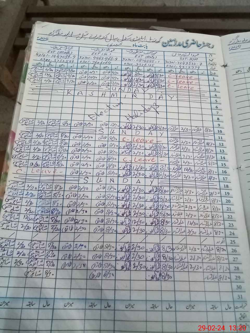 | CNIC | Full Name | Designation | R/C | Absence During Last Calender Month |