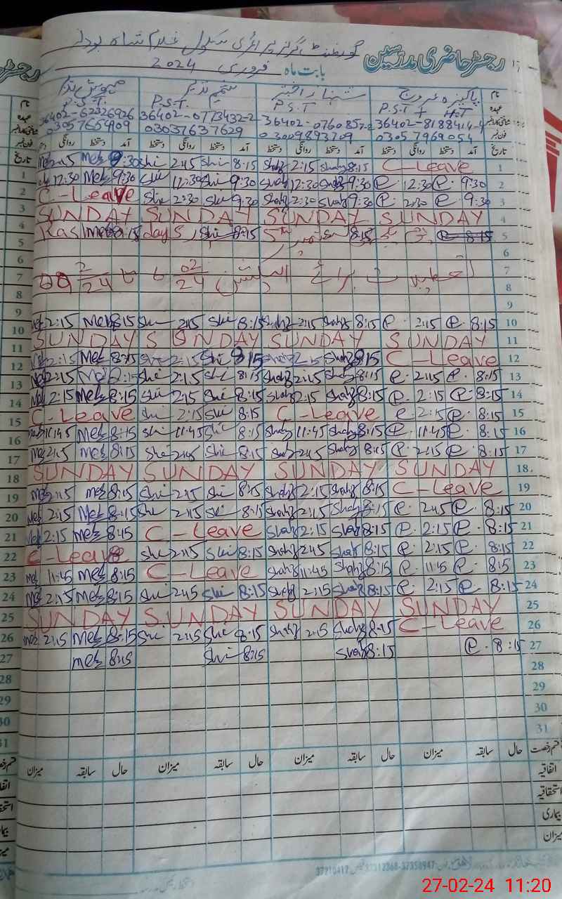 | CNIC | Full Name | Designation | R/C | Absence During Last Calender Month |