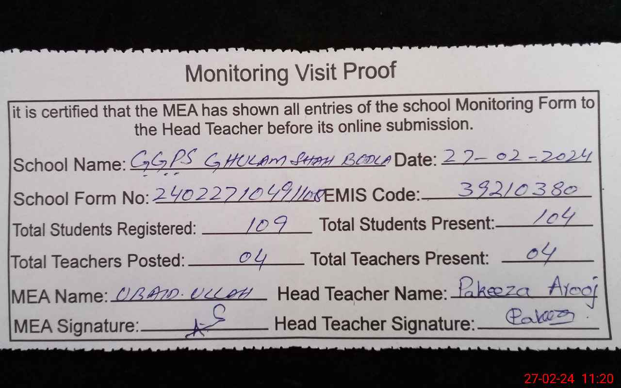 | EMIS Code: 39210380 | Name of School: GGPS GHULAM SHAH BOUDLA | |||