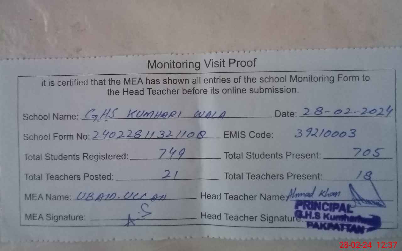 | EMIS Code: 39210003 | Name of School: GHS KUMHARAI WALA | |||