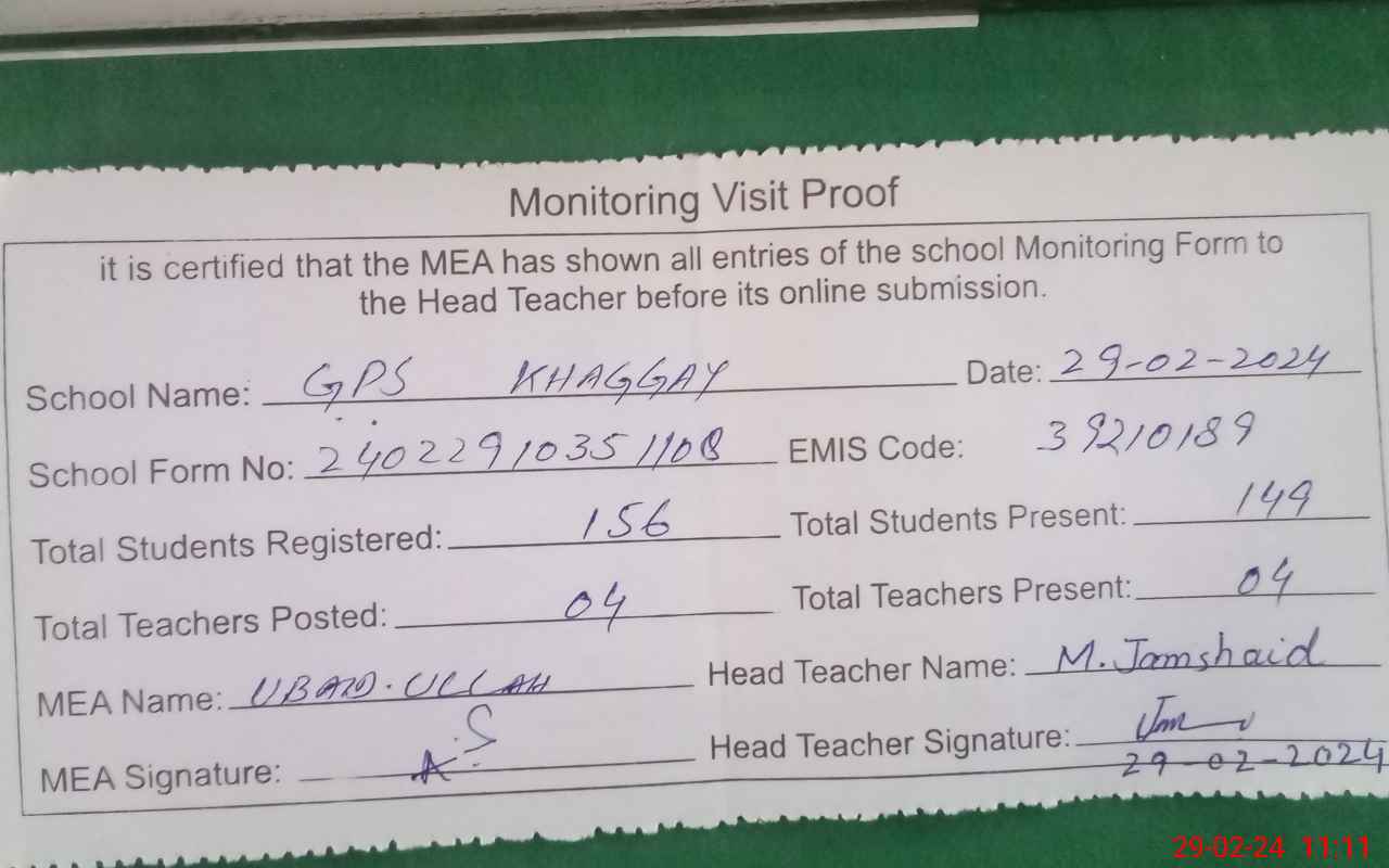 | EMIS Code: 39210189 | Name of School: GPS KHAGGAY PO PAKPATTAN | |||