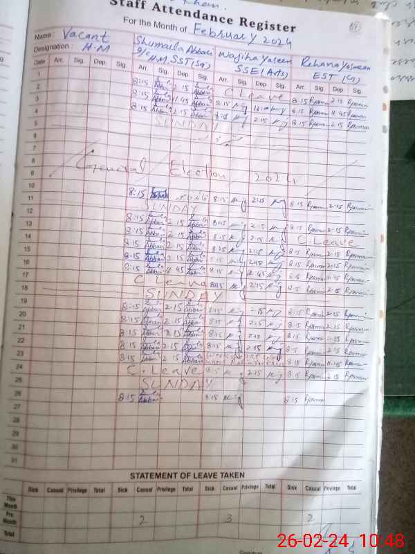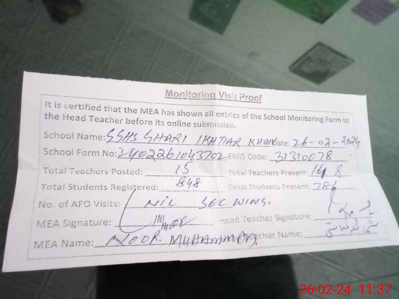 | Certified that this School was Inspected by the Undersigned MEA/DMO Today and the Information Stated Above is as Per Record. | |||||
