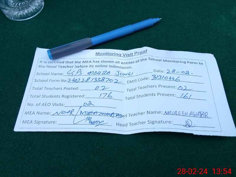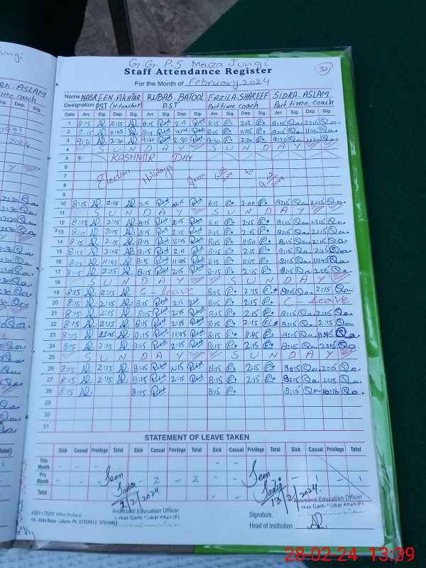 | EMIS Code: 31310446 | Name of School: GGPS MOZA JAHANGI | |||