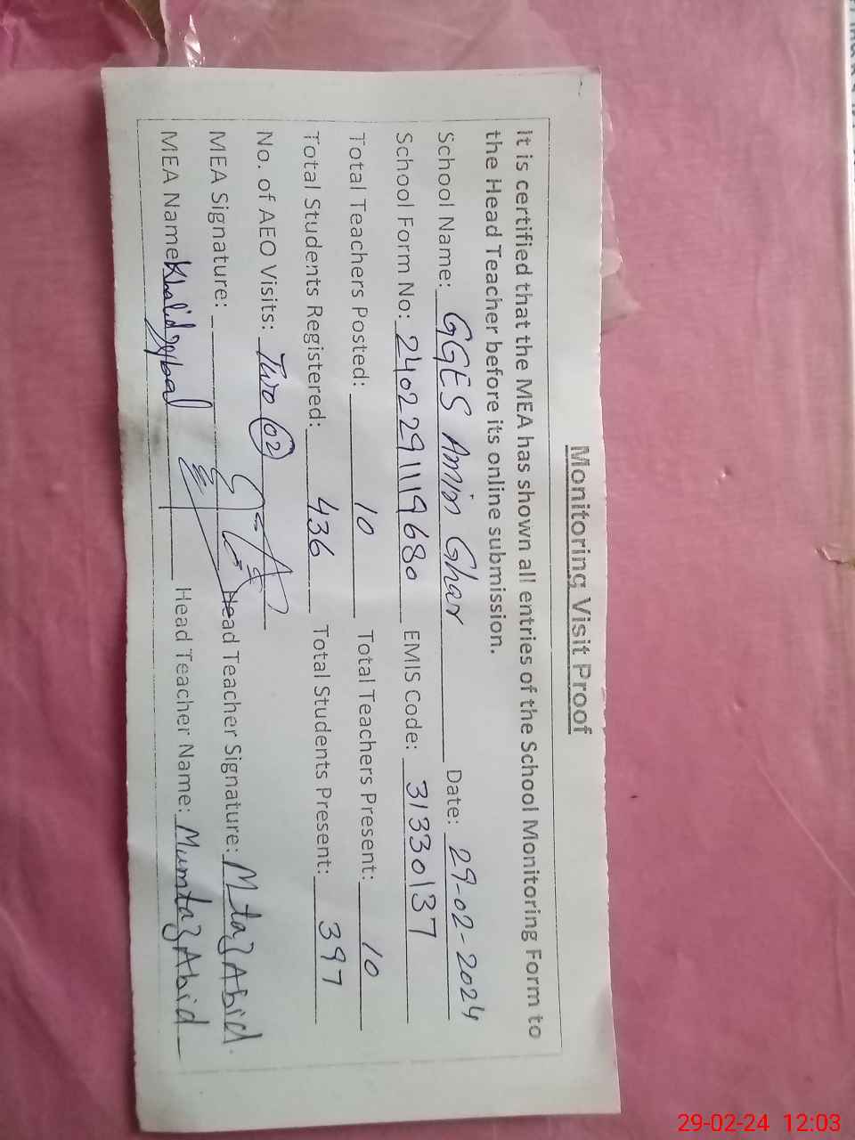 | EMIS Code: 31330137 | Name of School: GGES AMIN GARH | |||
