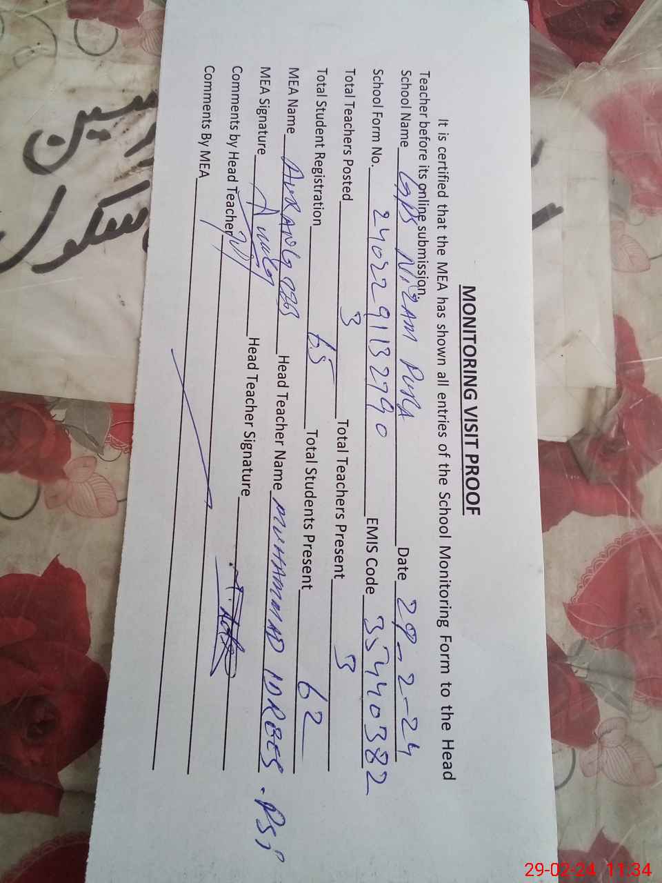 | EMIS Code: 35440382 | Name of School: GPS NAZAM PURA | |||