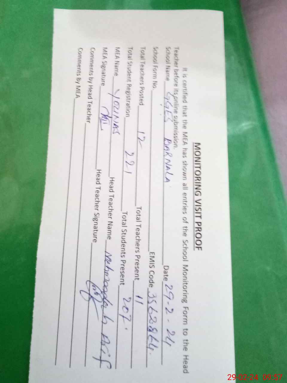 | EMIS Code: 35620864 | Name of School: GGES BARNALA CHAK 23 RB | |||