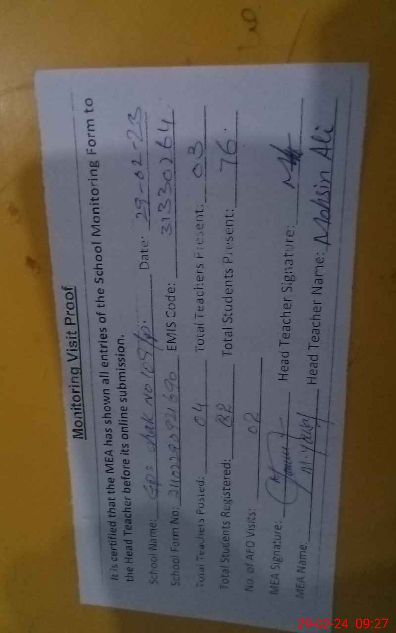 | EMIS Code: 31330264 | Name of School: GPS CHAK 109/P | |||