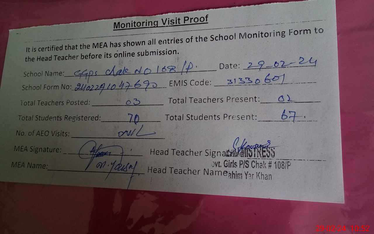 | EMIS Code: 31330601 | Name of School: GGPS CHAK NO. 108/P | |||