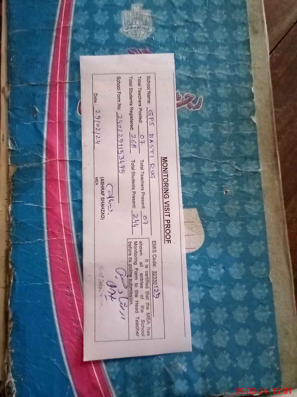 | EMIS Code: 32330129 | Name of School: GPS BASTI RUG | |||