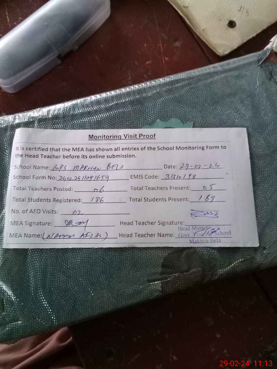 | EMIS Code: 31310198 | Name of School: GPS MAKHAN BELA (After Noon) | |||