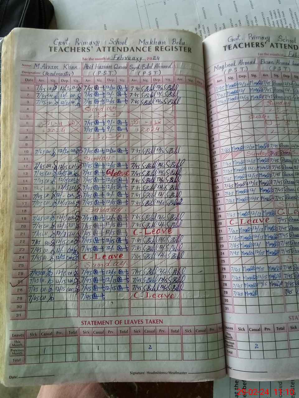 | Name: AB**** HU**** Designation: (School Headmaster's/Headmistress's) PST Phone/Cell Number: 03**** |