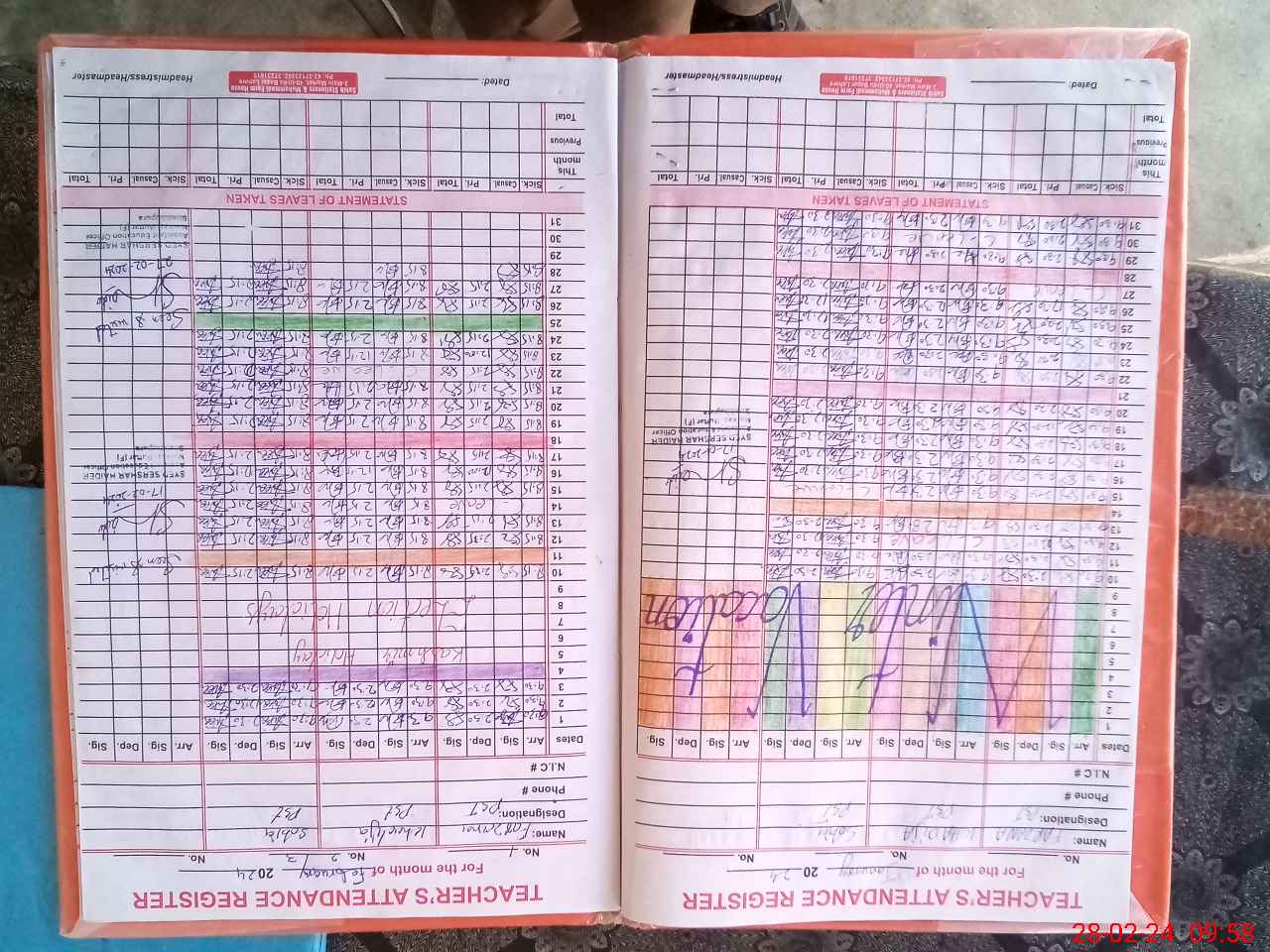 | CNIC | Full Name | Designation | R/C | Absence During Last Calender Month |