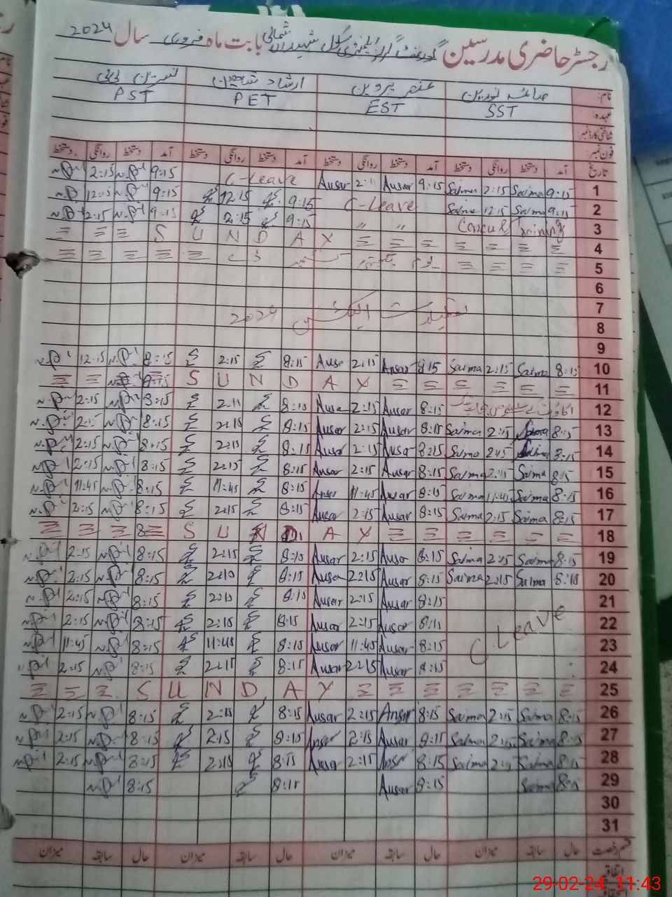 | Leave | Duty | Absent | Maternity | Medical | Ex- Pak |