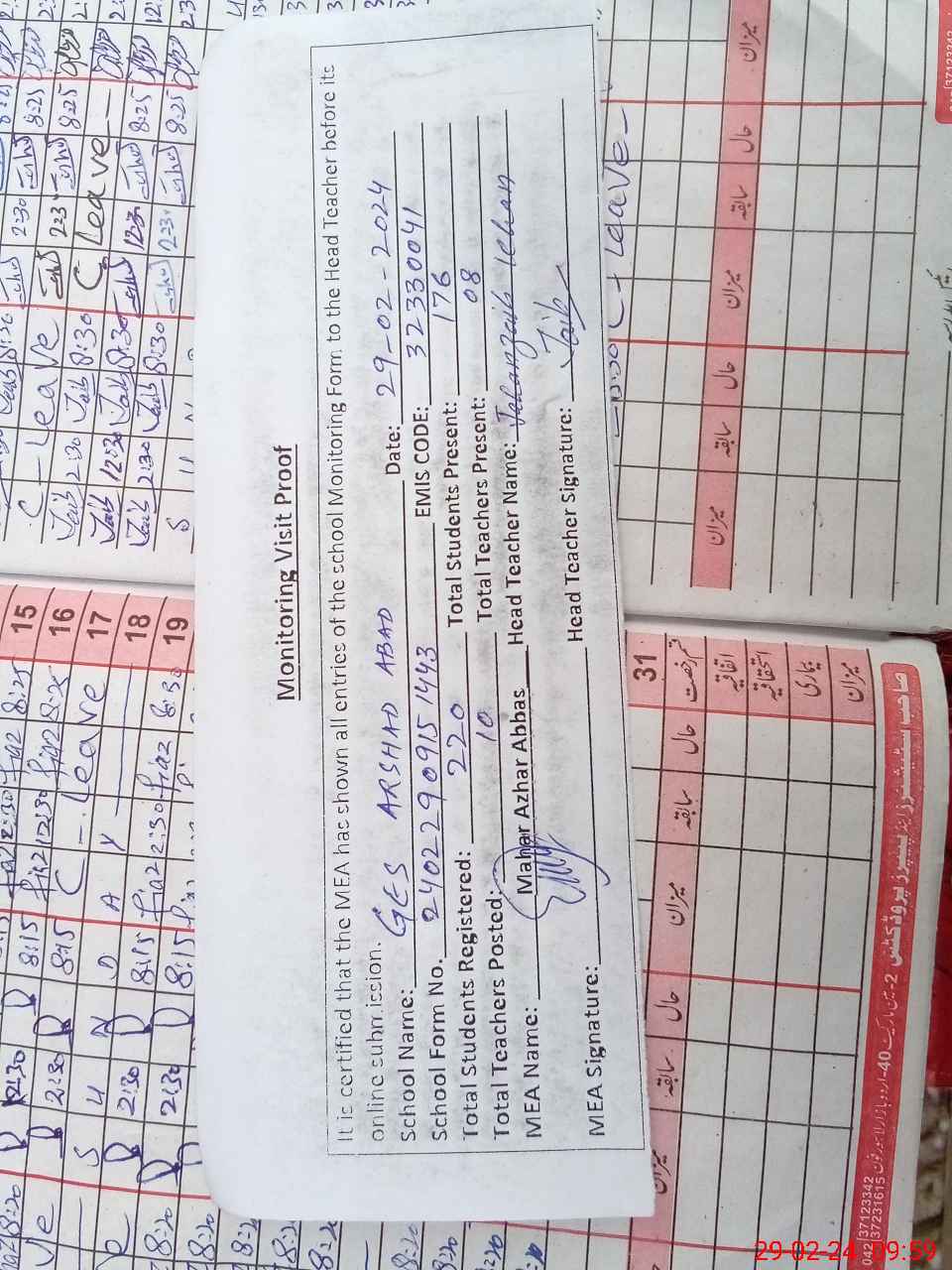 | EMIS Code: 32330041 | Name of School: GES ARSHAD ABAD | |||