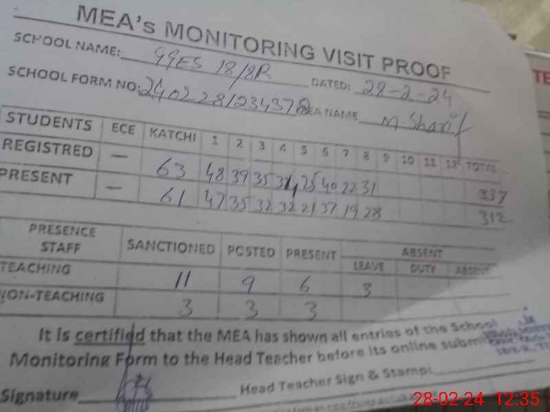 | Attendance Register | Head Teacher | MEA with School | Visit Proof |