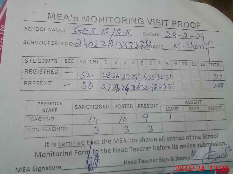 | Attendance Register | Head Teacher | MEA with School | Visit Proof |